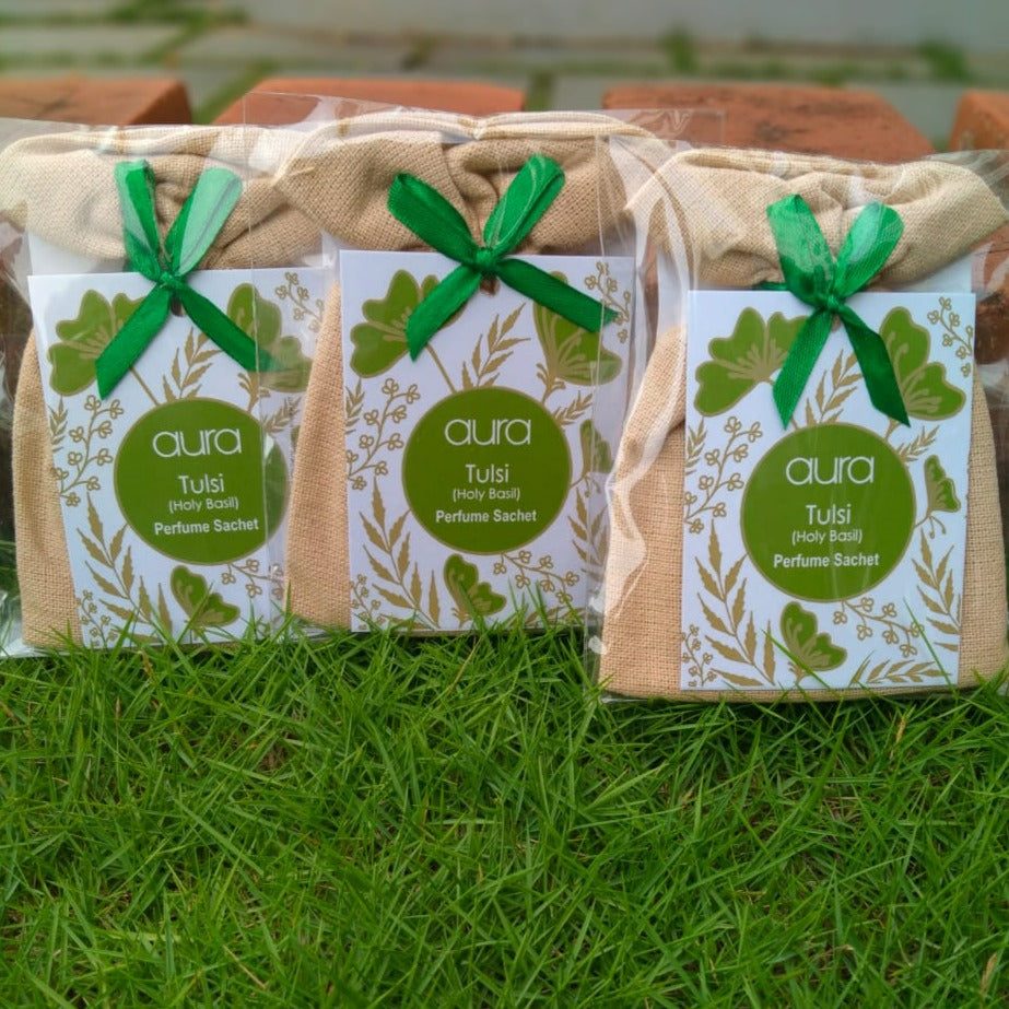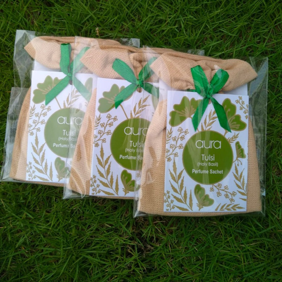 Aura Tulsi perfumed sachets help to fill your space with delicate scent with refreshing aroma. Made with fragrance which complies with IFRA guidelines, infused with powder extracts from nature