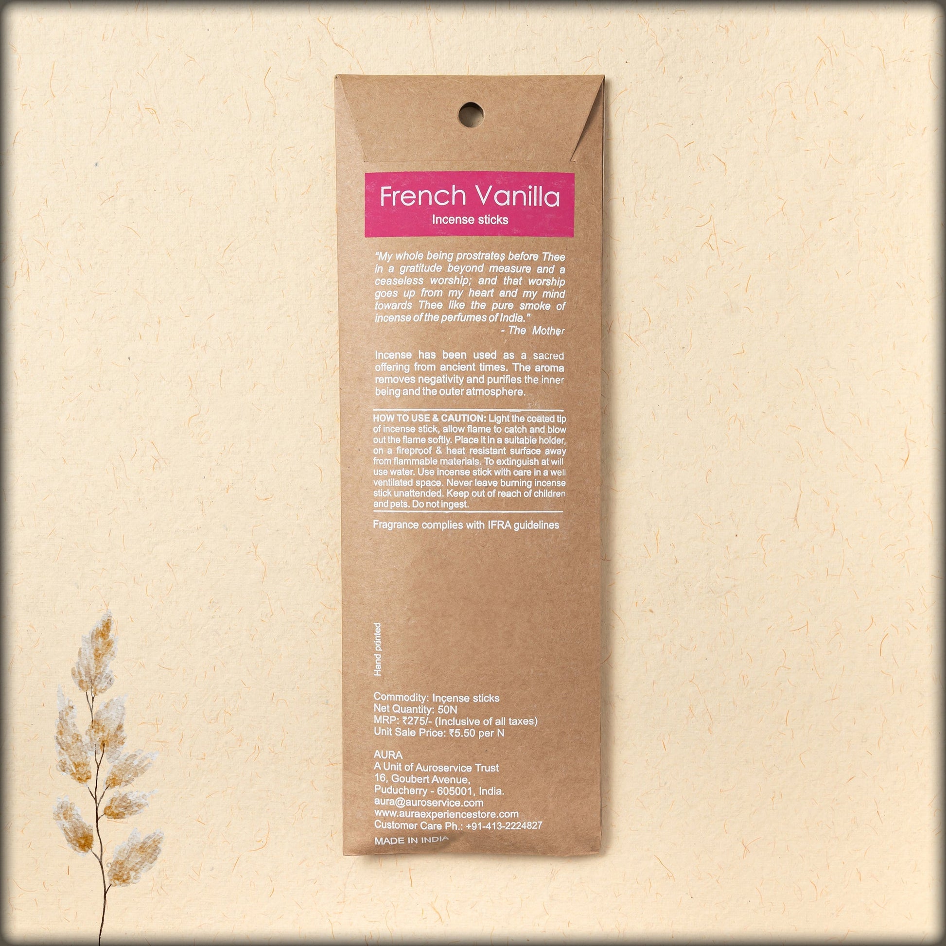 Hand-crafted with organic french vanilla, these incense sticks/agarbatti box offer a calming, toxin-free aroma perfect for meditation, relaxation, or daily rituals.