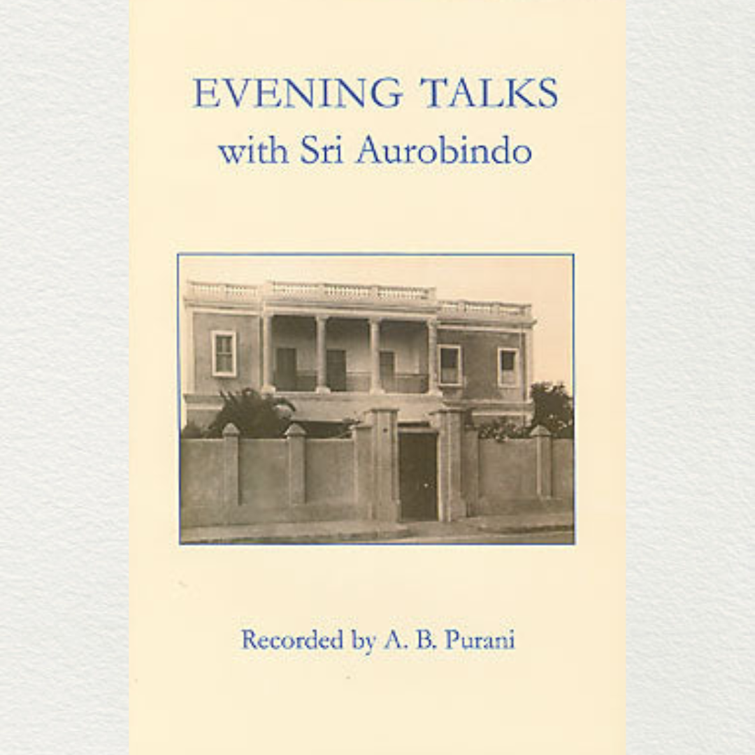 Evening Talks is A.B. Purani's soft-cover book of 836 pages that records informal conversations between Sri Aurobindo and his disciples during two periods: 1923–1926, when the talks were held on the verandahs of the houses in which Sri Aurobindo stayed, and 1938–1943, when they took place in Sri Aurobindo's room. The talks cover a wide range of topics—yoga, philosophy, art, poetry, psychology, science, and contemporary history, notably India's struggle for independence and the Second World War. They reveal something of the versatile nature of Sri Aurobindo's personality and his wide-ranging, profound knowledge of life as well as a glimpse of the heights of spiritual consciousness he embodied and through which he acted on both world events and on the natures of those drawn to his yoga.