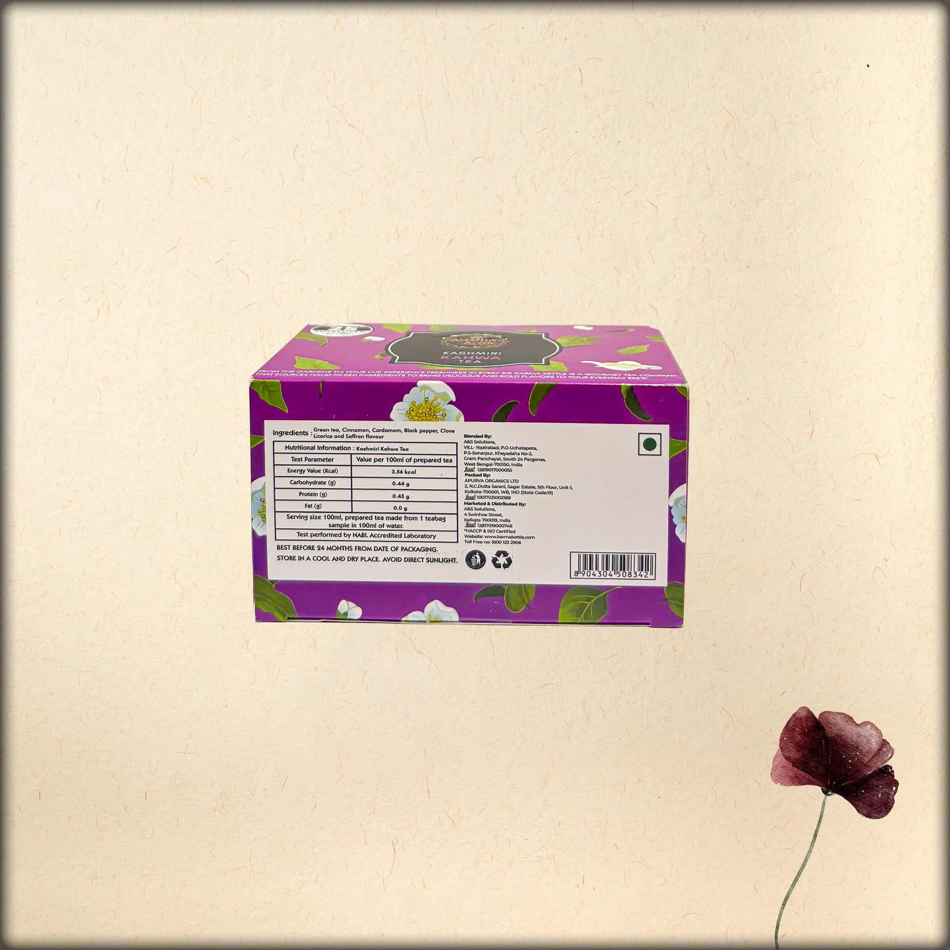 A warming Kashmiri-style tea blend of green tea, saffron, and spices. Aromatic, flavorful, and comforting, it promotes wellness and indulgent daily enjoyment.