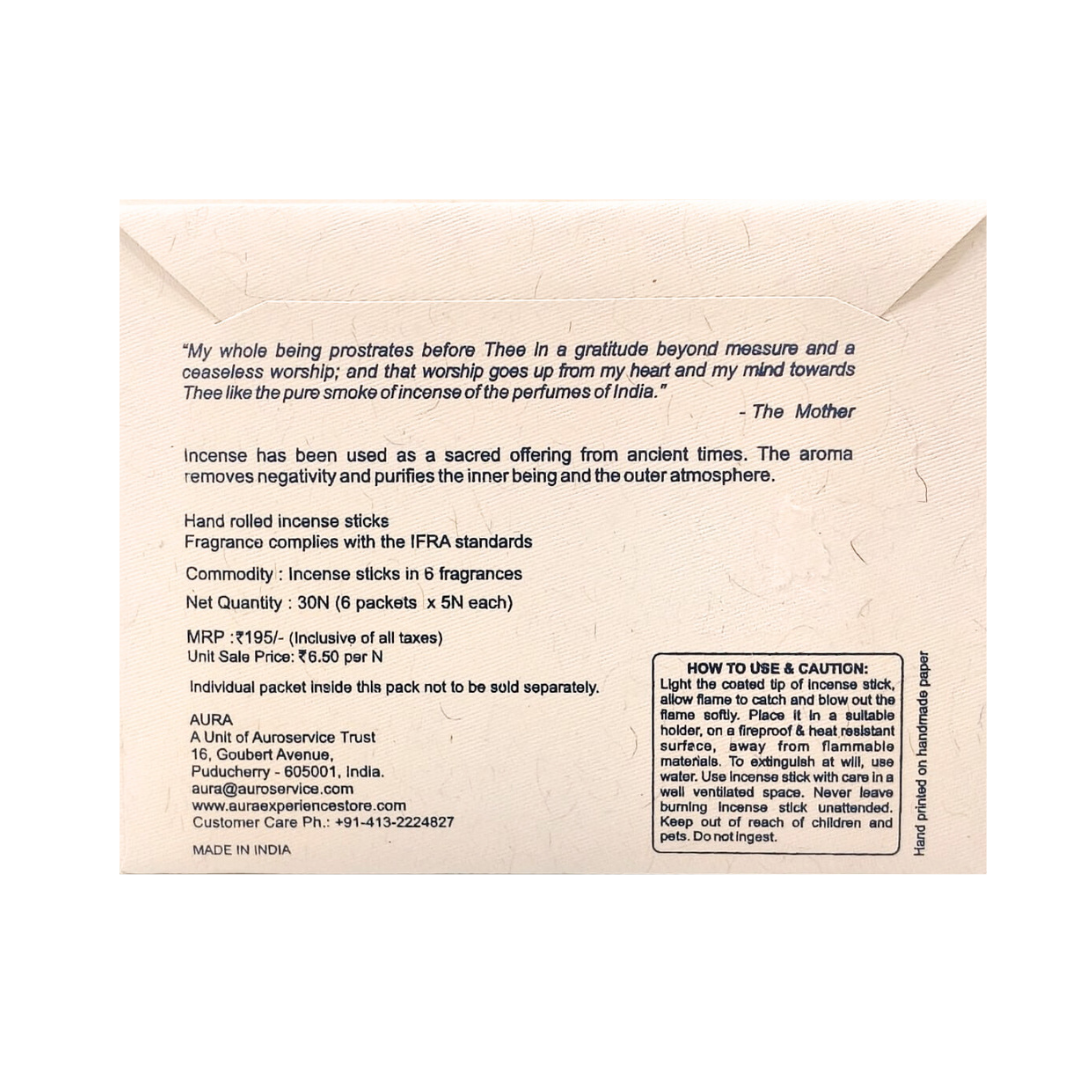 This exclusive set of six floral fragrances of incense sticks is in a form of pallet ideal for gifting for any celebration. The incense sticks come in a set of six packets, with each individual pack consisting of five sticks. You can use them daily in your abode. These fragrances are traditionally well-known in India to cleanse and purify wherever they are lit.